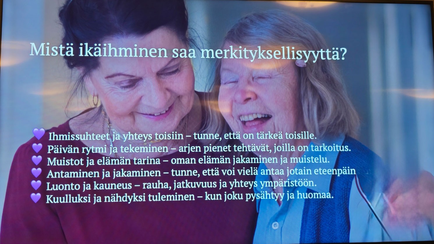 Kuva-albumi Onnellinen vanhuus luento 23.10.2025. Muutama valokuva luennolta. ← Takaisin kuva-albumiin