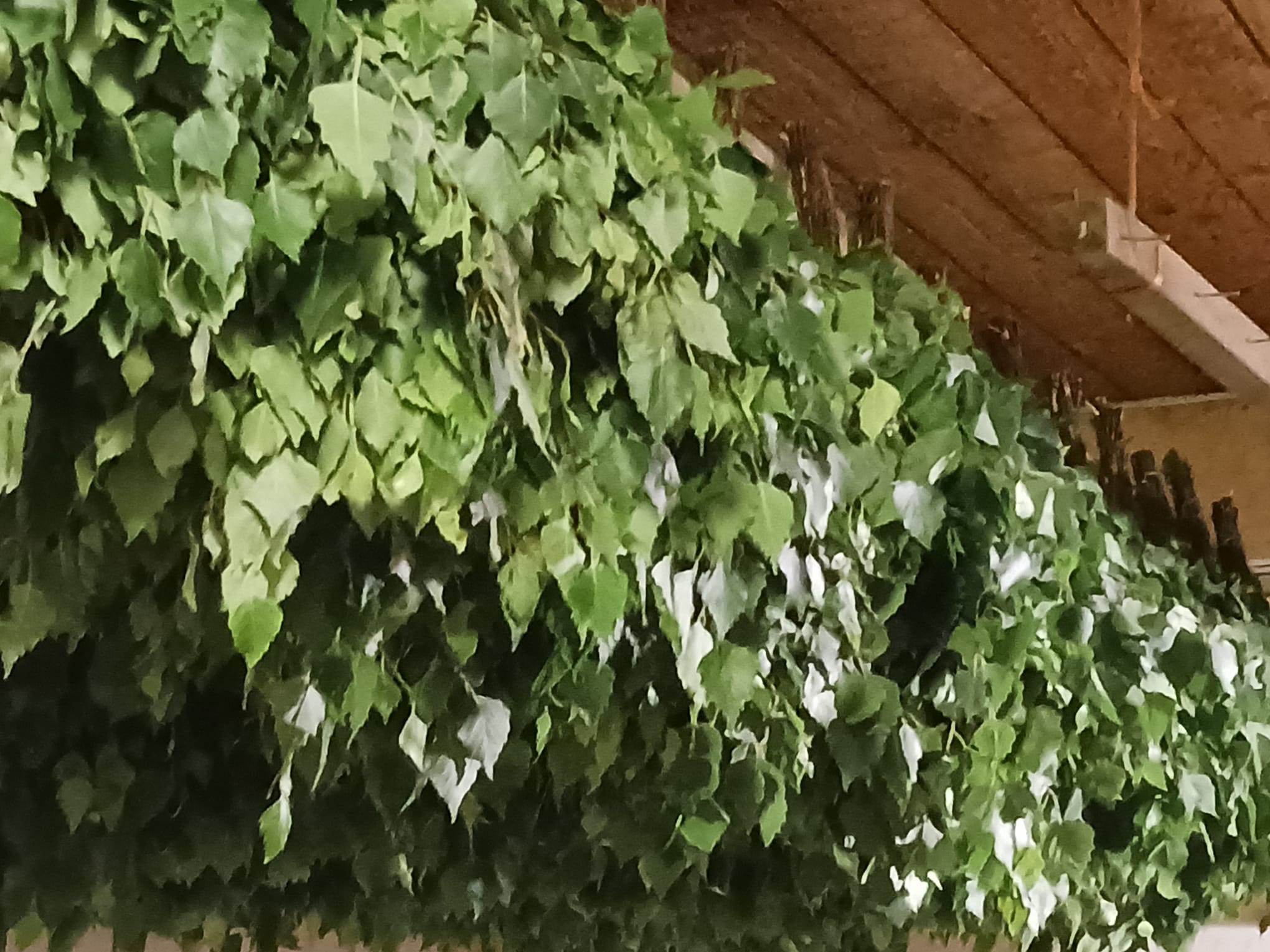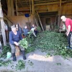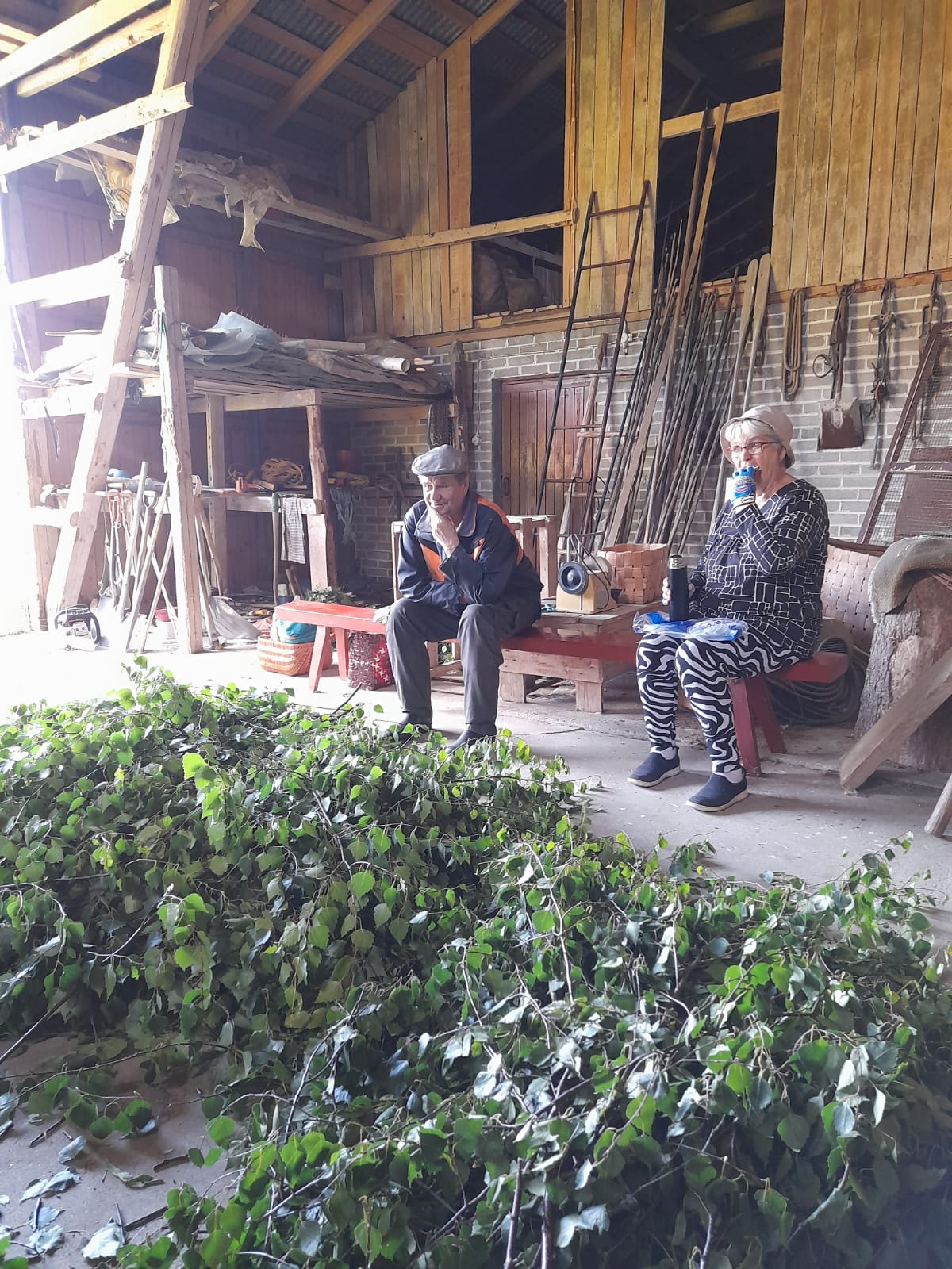 12.7.2023 vastatalkoot Väinön pihapiirissä. Paikalla oli isäntä Väinö ja neljä talkoolaista. Tuloksena 65 saunavastaa, joista osan Viljo kokosi vasta kotonaan,