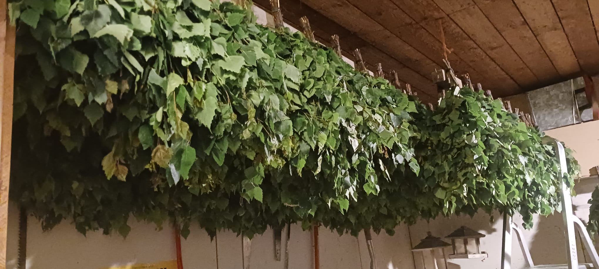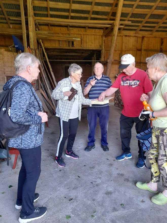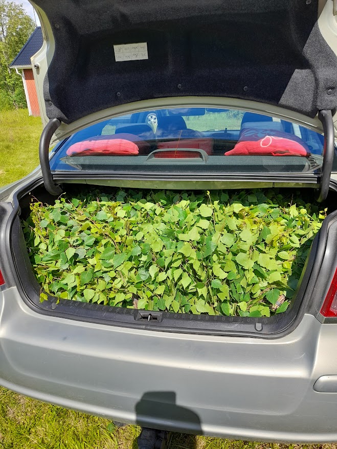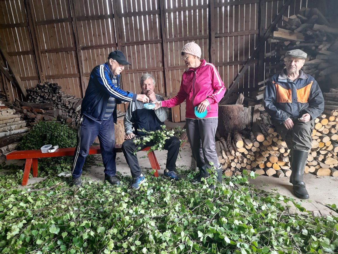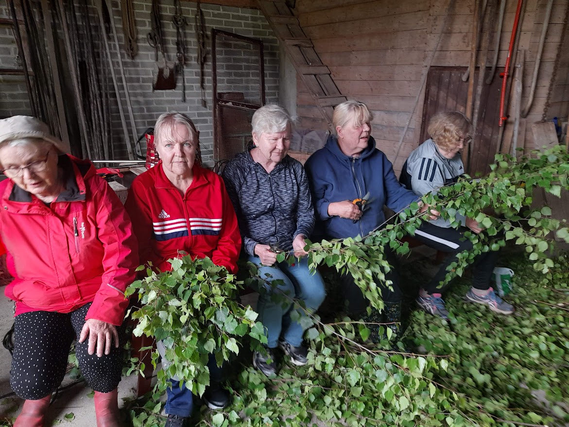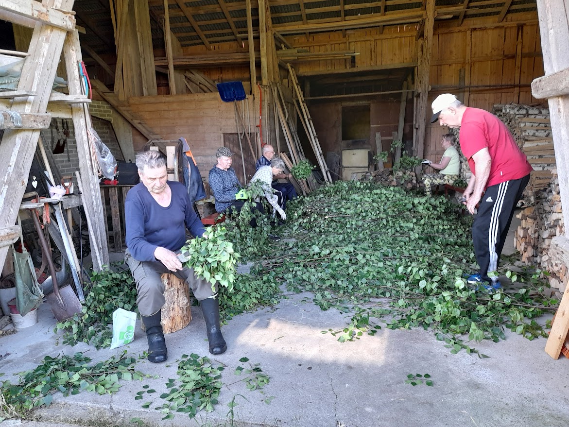1.7.2024 taas talkoilimme Väinön pihapiirissä. Paikalla 8 talkoolaista ja tuloksena 75 saunavastaa.
