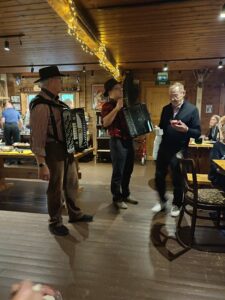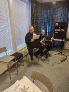 Torstaikerhossa oli musiikkia. Haitarissa Jussi Nyman ja laulajina Sauli Perätalo ja Kari Kivelä.