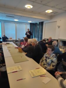 Arja Ek esitteli kunniakirjan, jonka Pateniemen eläkeläiset ry:lle on myönnetty uusista jäsenistä. Yhdistys sai 50 € rahaa jäsenhankinnasta.
