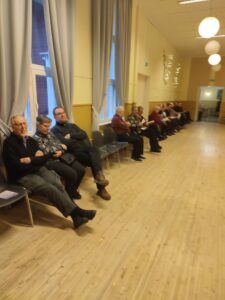 Keskiviikkokerho 3.4 oli tupaten täynnä. Asukastuvan vetäjä Markku Hahto oli kertomassa asukastuvan toiminnasta.