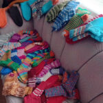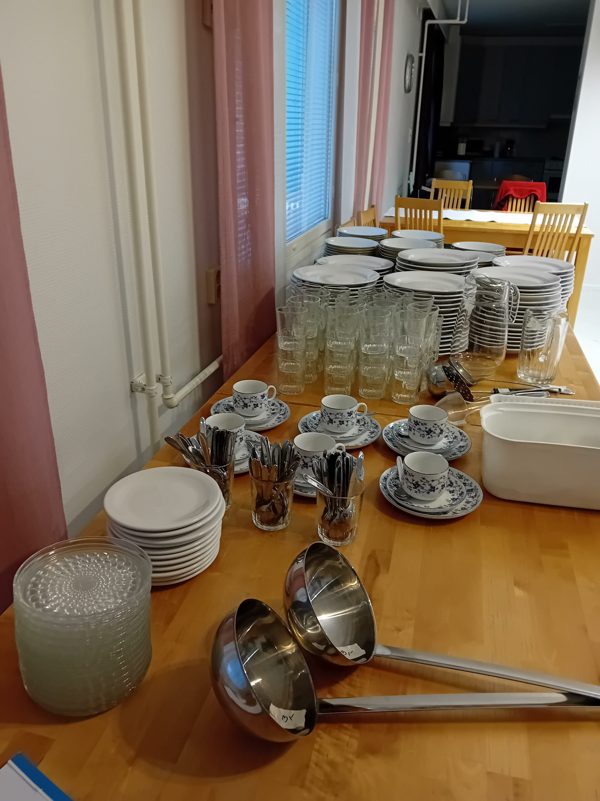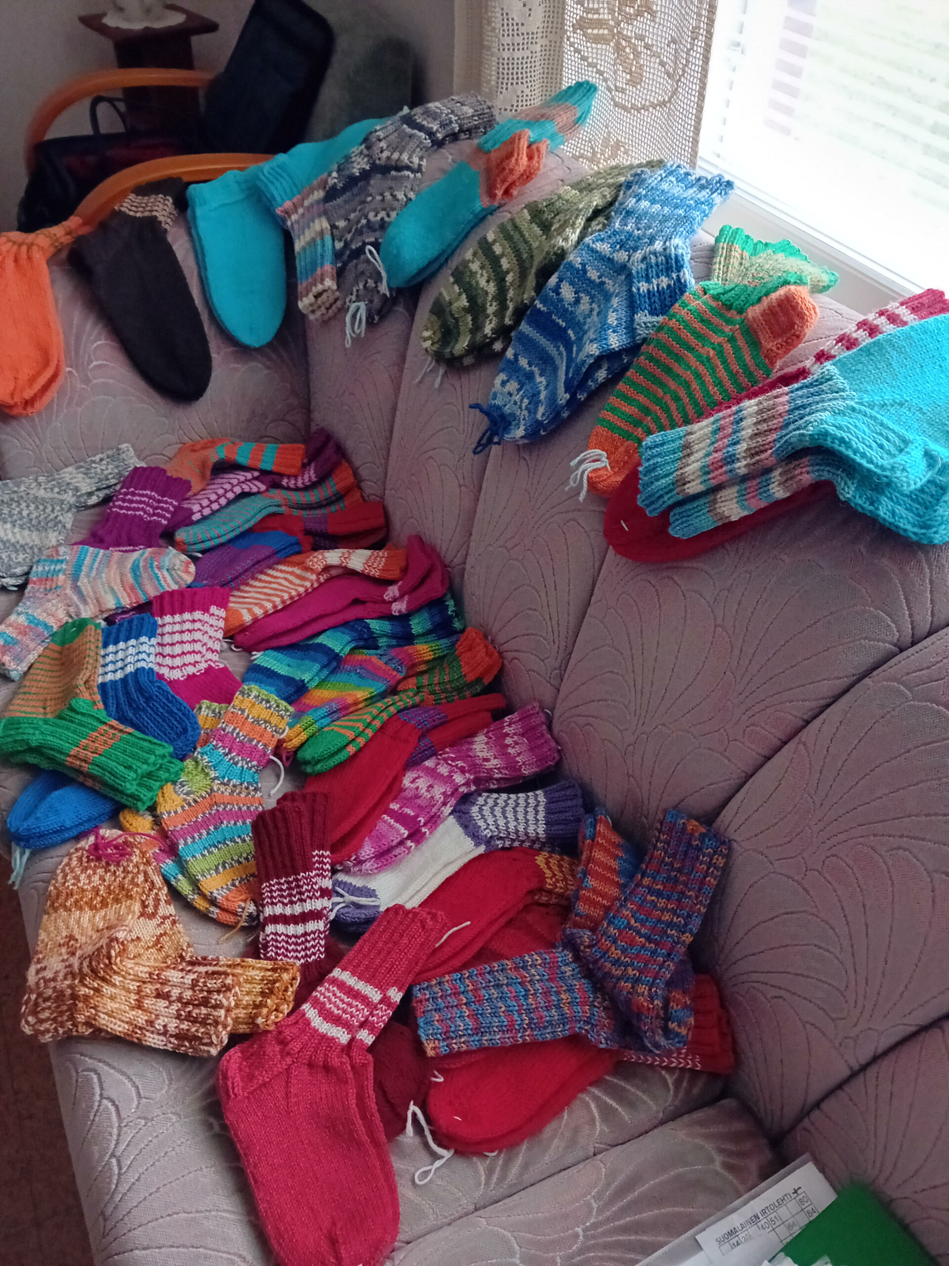 Myimme astioita sekä muuta pikkutavaraa Yhdistysten talolla kesällä 2024. Helenan kutomat sukat, joita olikin aikamoinen läjä, tekivät myös kauppansa.
